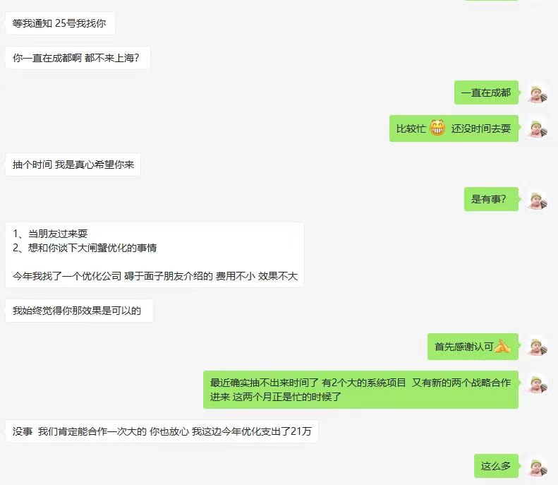 感谢【上海陆总】对推来客效果的肯定,还记得第一次合作是在18年左右,当时几个关键词找了3家网络公司都没做上去,后面找到我们试试。一个月左右就全部上网络正规PM娱乐城了。客户那边产品有季节性,而且只做几个大词。中间断断续续合作过。客户中间也找过好几家其他公司了,几年下来,还是觉得我们效果是最好的。