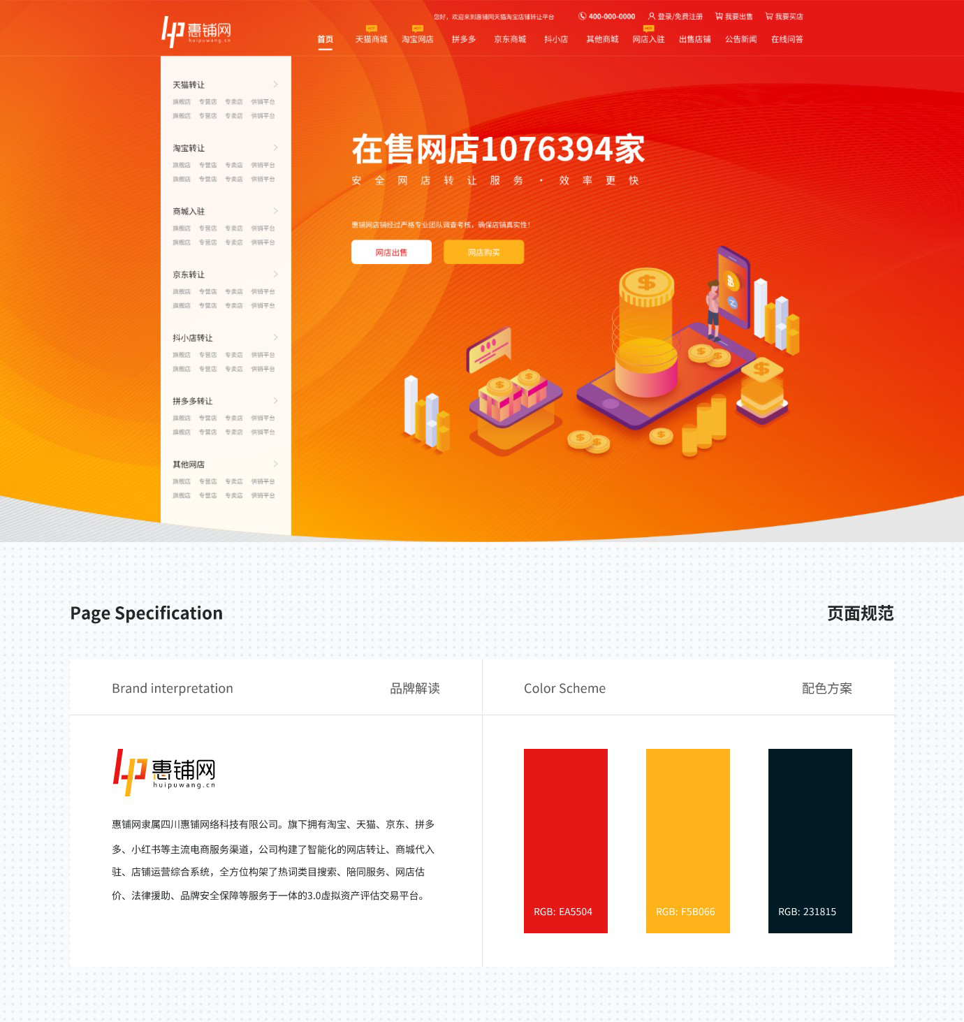 平台主打天猫转让,淘宝店铺购买、淘宝店铺出售、网店转让、京东、天猫、拼多多等网店转让。惠铺网专业网店转让平台!