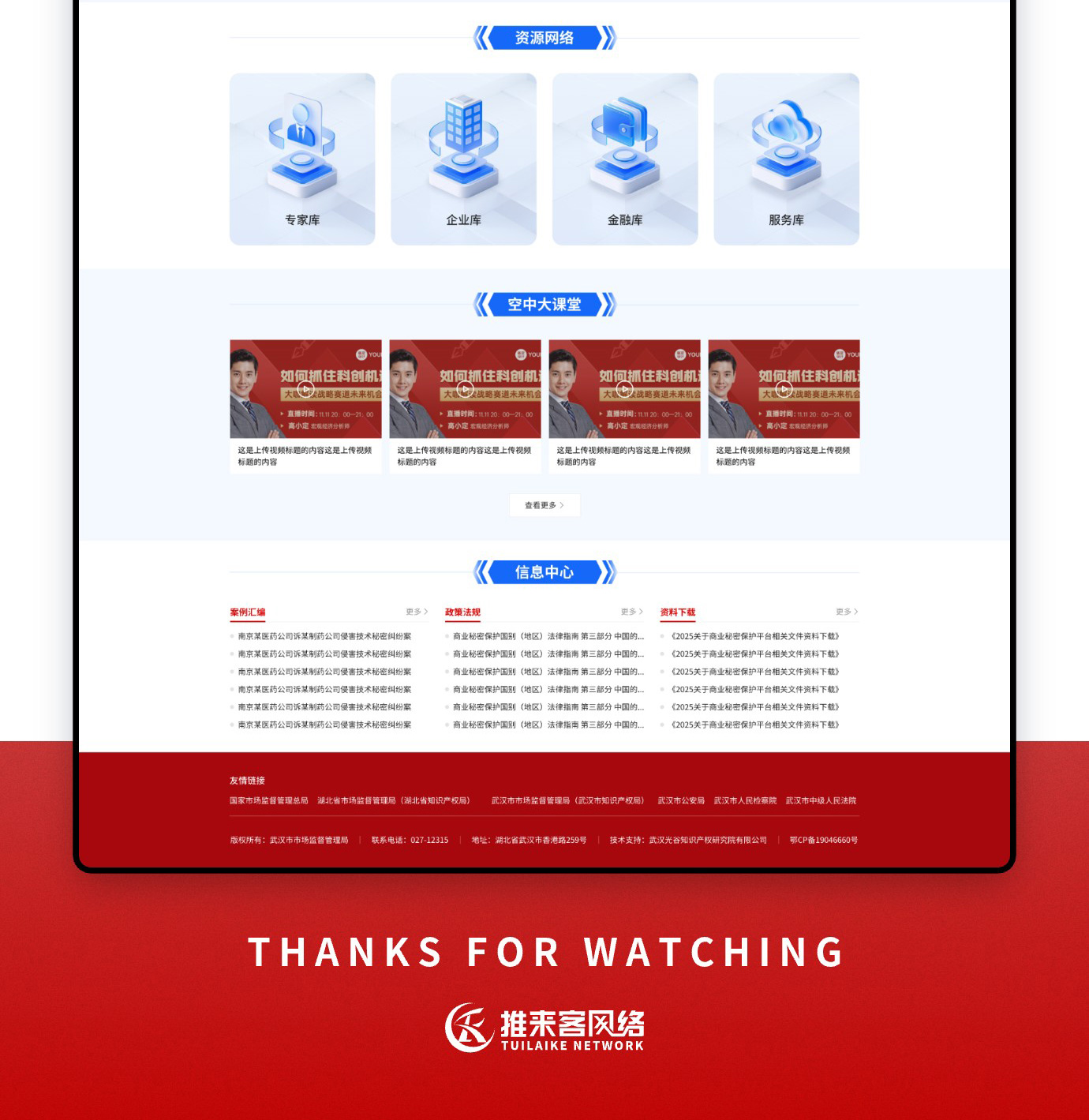 武汉市商业秘密保护公共服务平台是由武汉市市场监督管理局构建,武汉光谷知识产权研究院负责具体事务运营的综合性服务载体,为全市企业提供全方位商业秘密保护支持。平台集成“八大基础功能”(商业秘密风险体检、商业秘密密点梳理、商业秘密鉴定咨询、商业秘密保密措施、商业秘密体系建设。