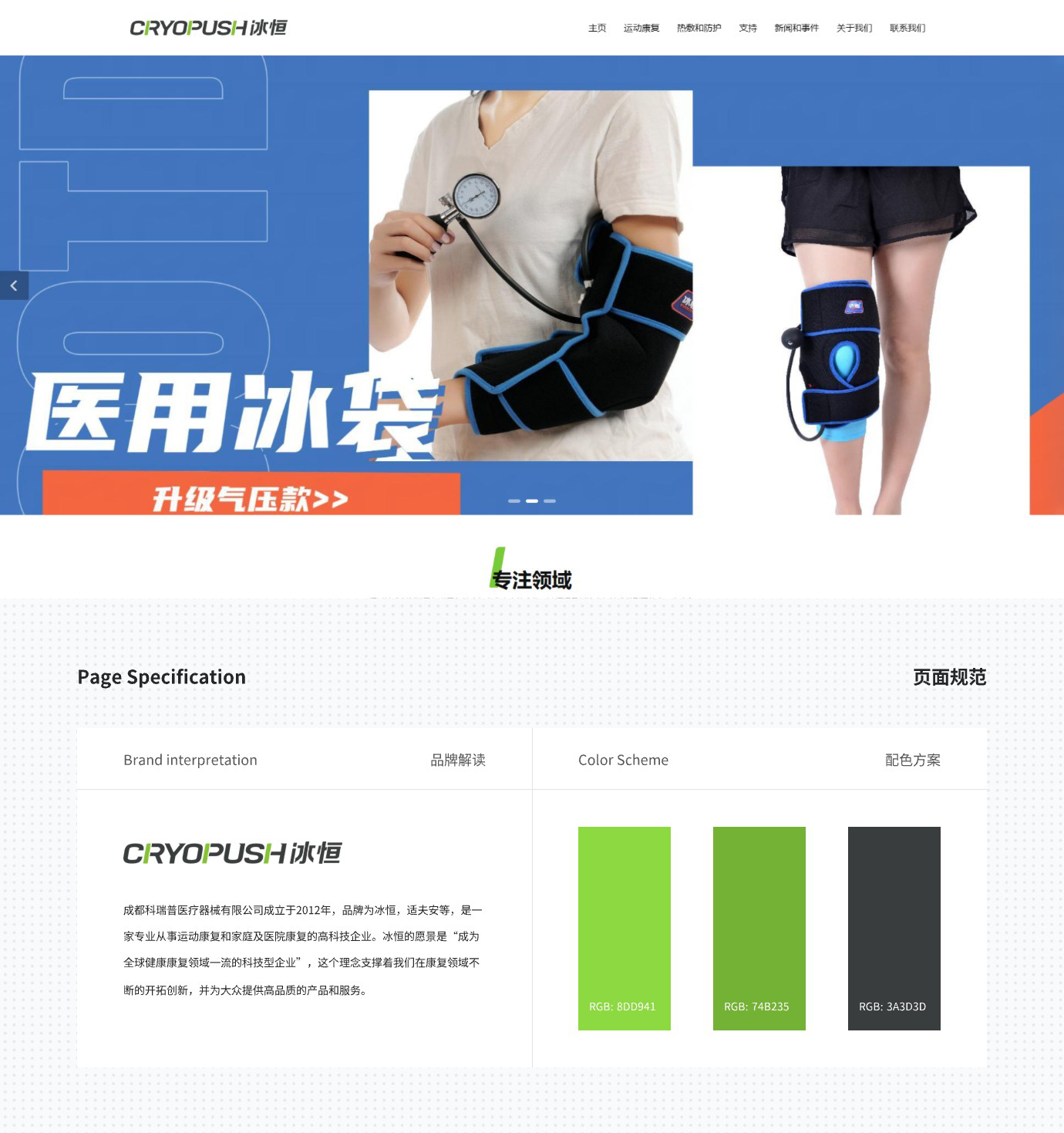 成都科瑞普医疗技术有限公司成立于2012年,品牌为冰恒,是一家专业从事运动康复和家庭及医院康复的高科技企业。冰恒的愿景是“成为全球健康康复领域一流的科技型企业”,这个理念支撑着我们在康复领域不断的开拓创新,并为大众提供高品质的产品和服务